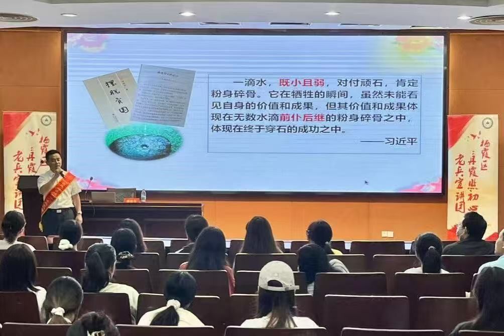 宣讲中,缪维均以“水滴石穿”为话题切入,深情讲述了英雄杨根思短暂而壮烈的一生:1922年,杨根思生于贫苦家庭;1944年参军入伍后,他刻苦训练,迅速成长为部队中的爆破能手;1950年,在抗美援朝战场上,为坚守阵地、阻击敌人,他毅然与敌人同归于尽,用生命诠释了“三个不相信”的英雄誓言:不相信有完不成的任务、不相信有克服不了的困难、不相信有战胜不了的敌人。同时,缪维均还结合自身部队训练经历,为杨根思的英雄事迹作出生动注脚,让在场学子更深刻地体会英雄精神的重量。