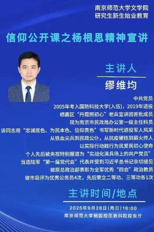 2025级研究生始业教育之信仰公开课在教科院报告厅隆重举行,公开课主题为杨根思精神,由栖霞区“丹霞照初心”老兵宣讲团成员缪维均主讲,网赌