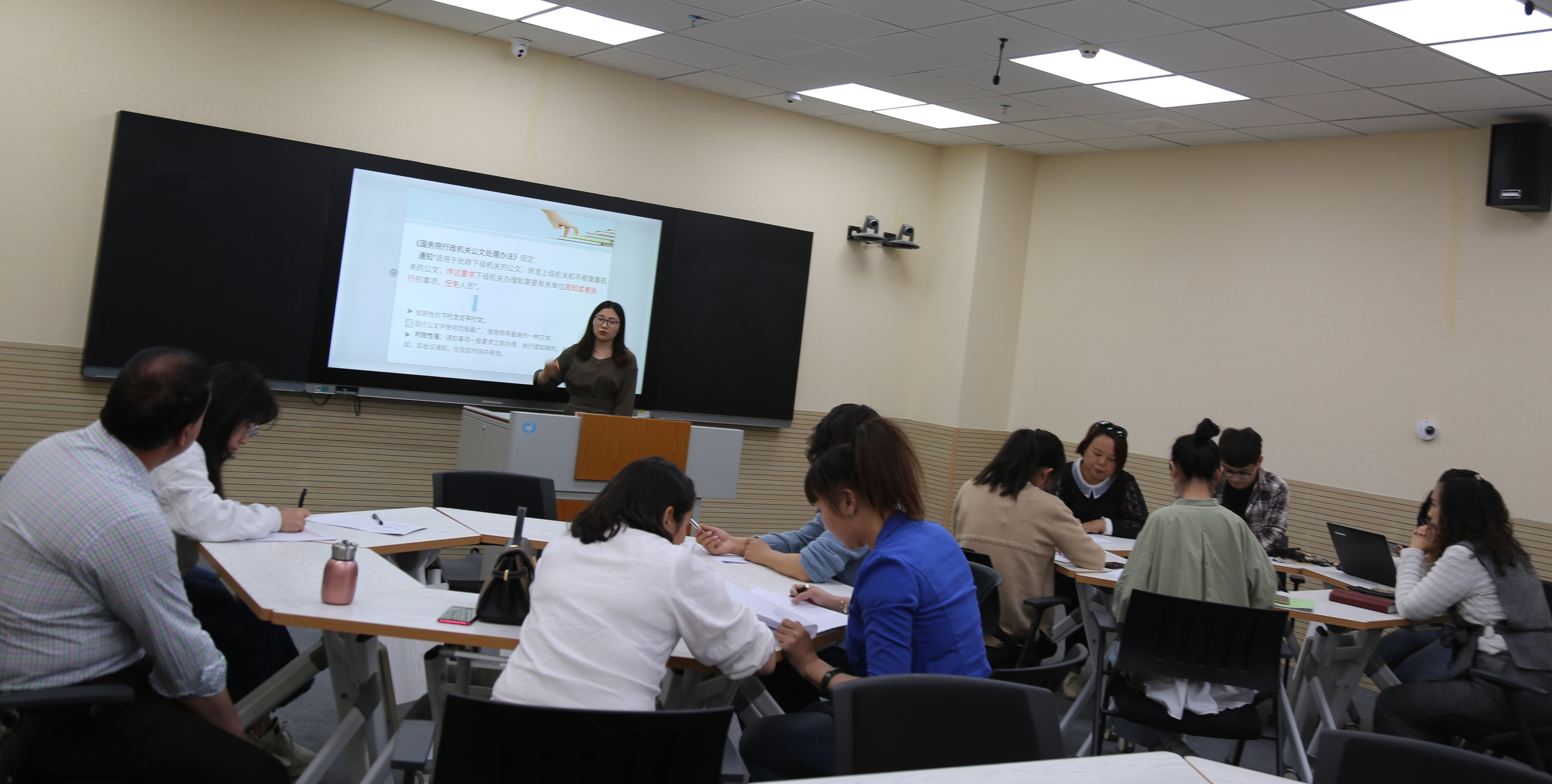 实战式检学,重成效。为期一个月的专题培训立足实际,突出重点,设置了抢答积分、你写我验等互动形式,组织参训教师对单位公务文稿“找茬”,实现以练促学、以写促教,并对培训期间各部门公文质量进行排名,反复“敲打”锤炼写作技巧,提升写作能力。