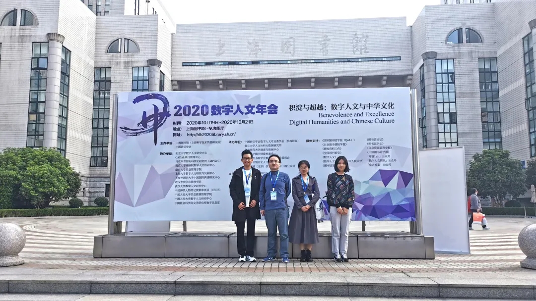 2020年10月19日至10月21日,为深度聚焦数字人文的中国问题,2020年中国数字人文年会在上海图书馆举行,海内外数字人文领域相关学者一同前往,共襄盛会。南京师范大学数字人文团队指导老师李斌副教授,本科生万晨、常博林、陈欣雨,研究生易全旺参加了本次会议。