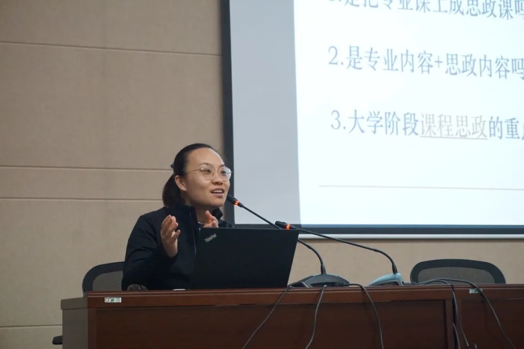 冯敏萱老师向我们介绍了她学习课程思政建设理论知识的心得和教授专业课《应用语言学基础》的教学经验,并指出,大学阶段课程思政的重点和特点是要在专业内立德树人,传递正能量,培养社会责任的担当者和实践者。