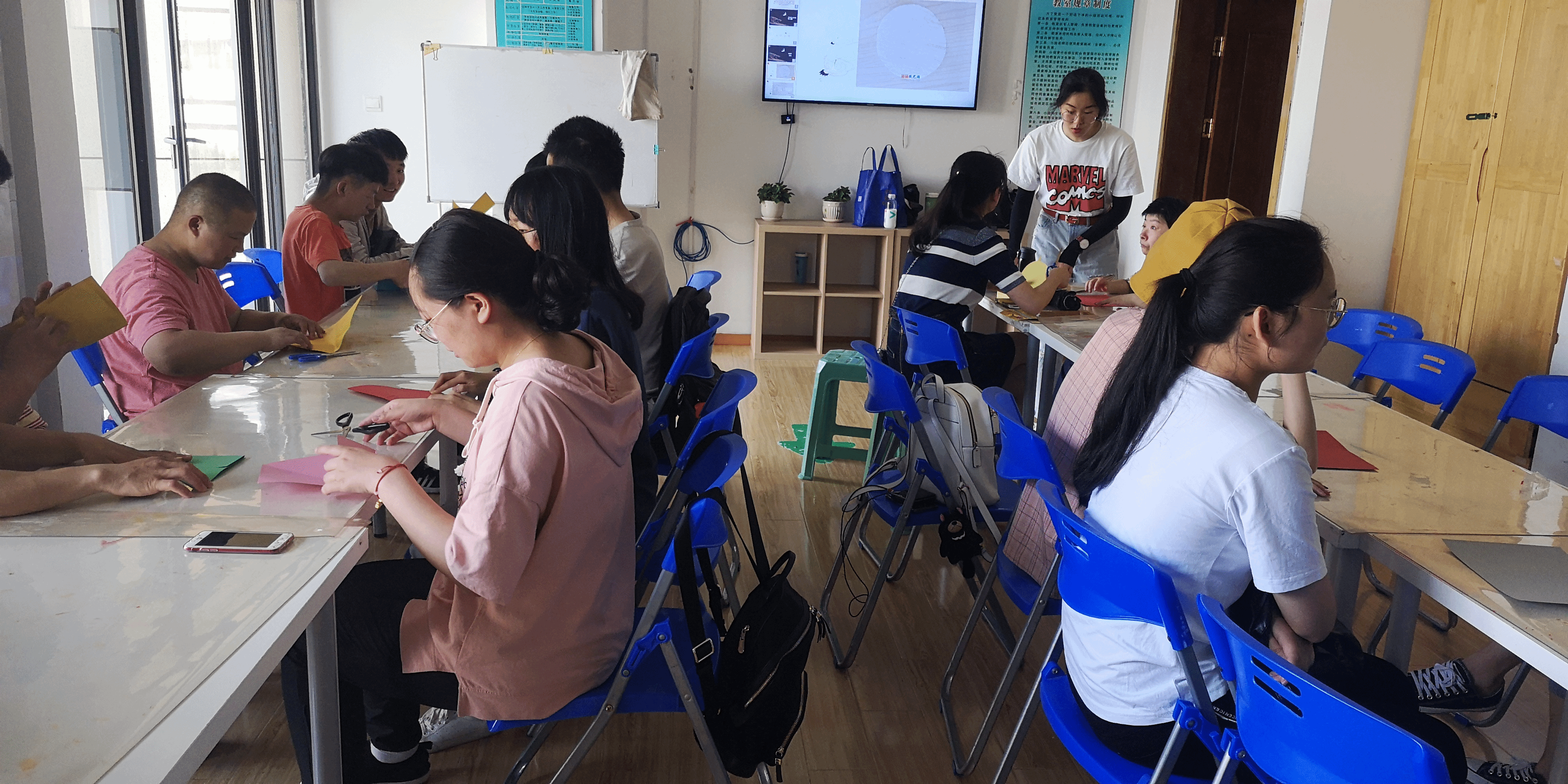 在母亲节时,我们通常会送康乃馨给母亲,以祝愿母亲健康长寿,并表达不朽的母爱。由于条件限制,志愿者们无法准备鲜花,所以就用纸花来代替了。在志愿者们的帮助和指导下,学员们都完成了康乃馨纸花的制作。从折纸到剪纸,再到组装,学员们都十分认真。