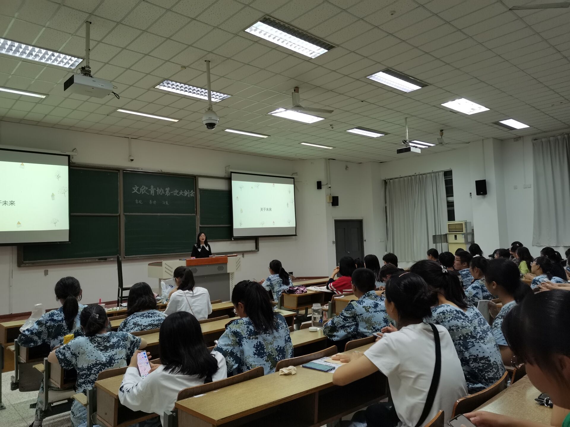 文欣青协第一次大例会于学明楼202教室召开。本次例会由常规事务部部长汤梦茹主持,文欣青协主席瞿邢芳,以及文欣青协常规事务部、基地建设部、活动策划部的各个部长副部长、文欣青协新干事们都悉数到场。会议持续了一个小时,场面轻松活泼又不失沉稳大气。