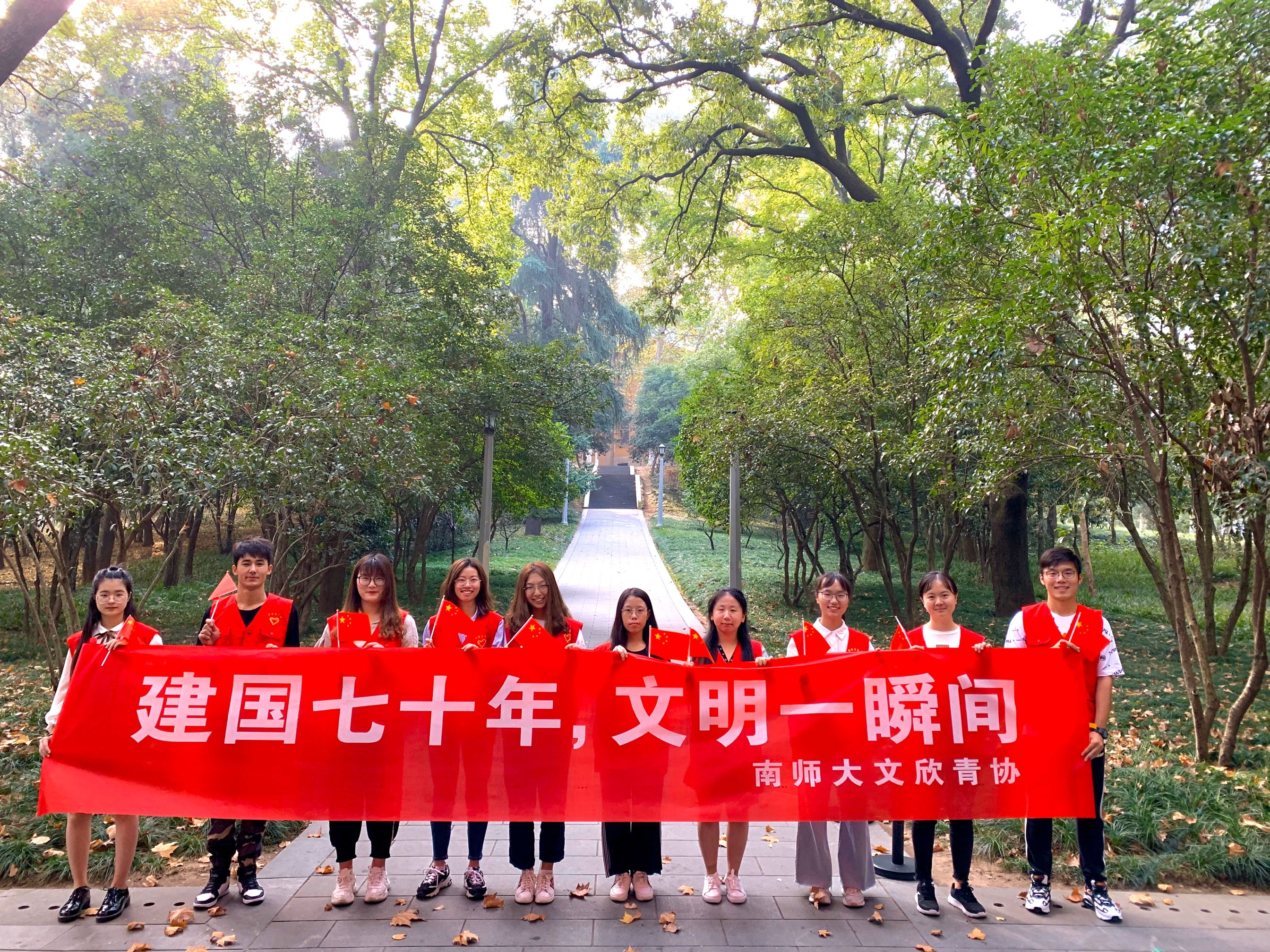 文欣青协钟山基地的姜颖凡、张敏、贺冯雪等十名志愿者前往美龄宫,开展了以“中华人民共和国成立七十年,文明一瞬间”为主题的本学期的第一次志愿活动。