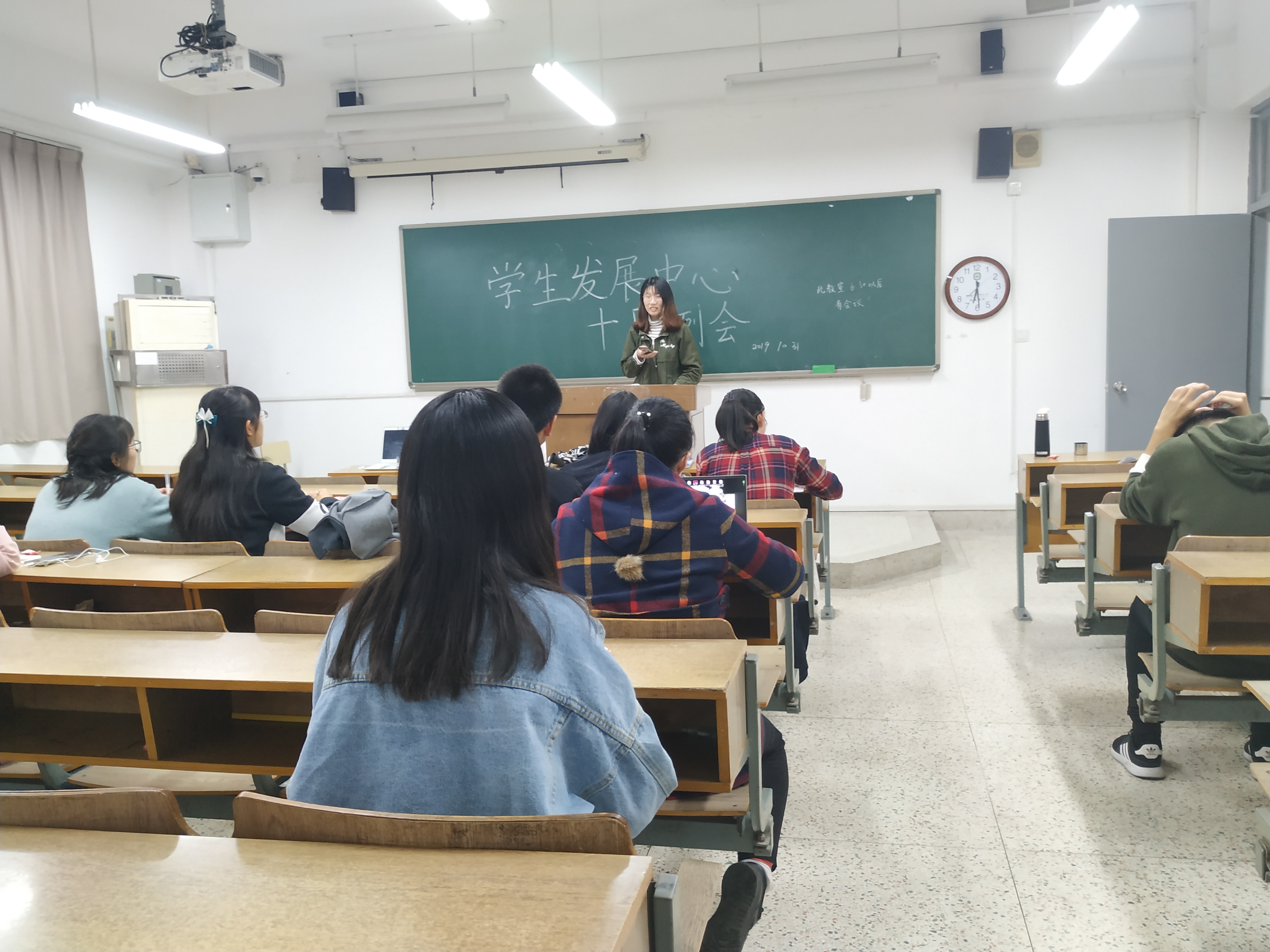 学生发展中心于10月31日晚6:30在学正楼109举办了十月例会。参加例会的有部长蔡书勤,副部长相可可、裴杰以及19级干事。此次会议的内容主要是总结十月份工作,介绍十一月份工作,安排具体的活动事务和讲解新的综测方案等。