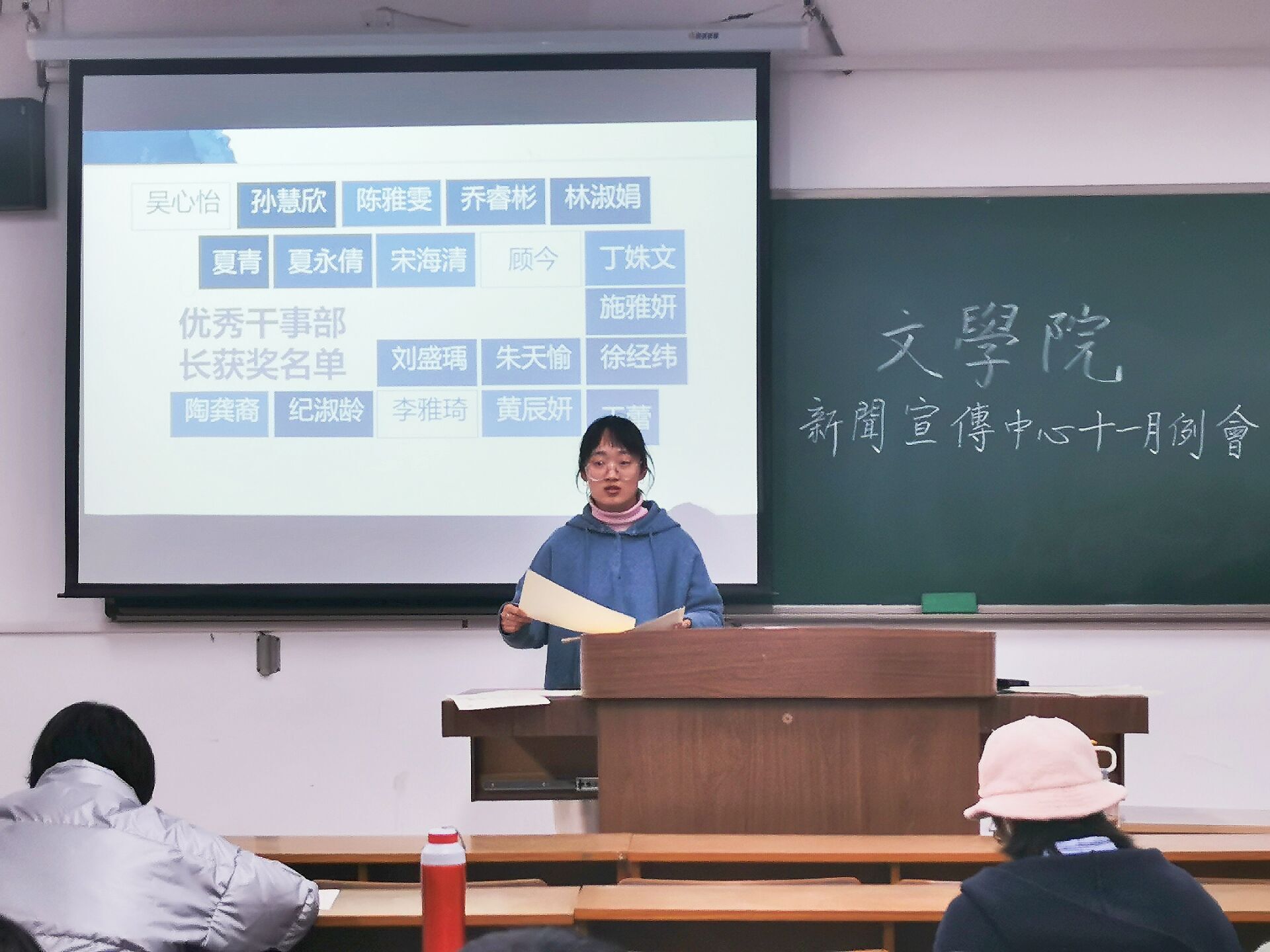 新闻宣传中心在学正楼311教室召开了十一月例会。此次例会由海报部的部长时艺文主持,到场的有各部门的部长以及干事。