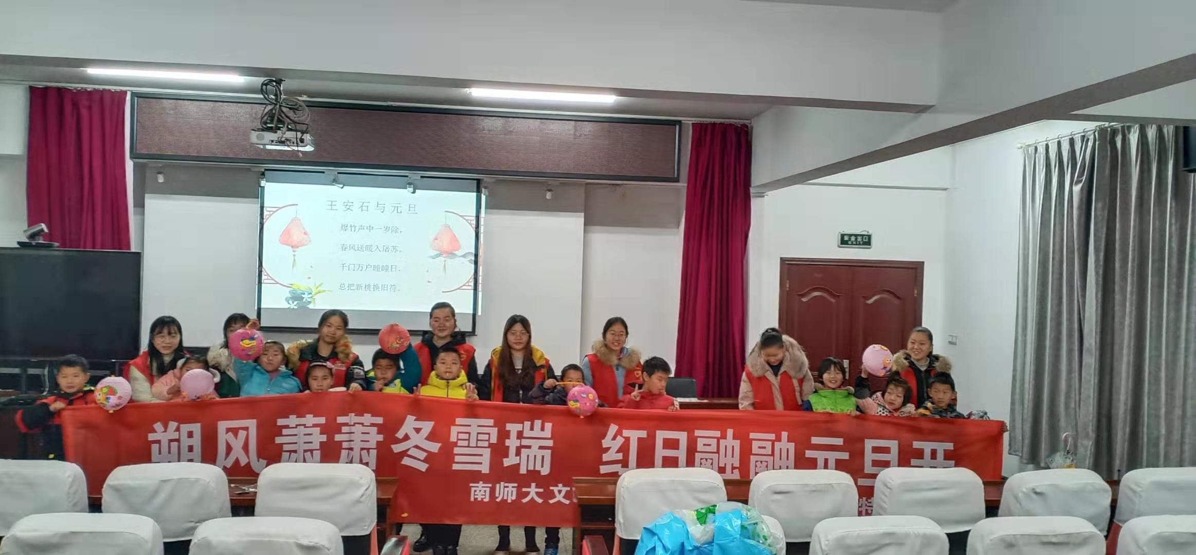 当天,在特色活动开始前,全体志愿者于上午在南京师范大学1号门集合,前往活动地点——百水芊城基地。到达后,全体志愿者在基地处分工完毕,刘清负责讲解元旦相关的知识并担任活动主持人,其余志愿者负责帮助小朋友们制作灯笼。