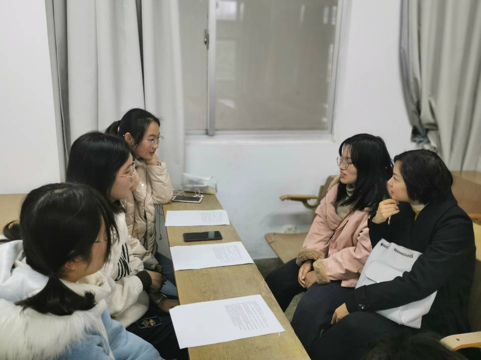 新闻宣传中心的乔睿彬同学、顾今同学、夏青同学、张晶晶同学和施雅妍同学在仙林校区学明楼504教室对16级汉语言文学专业的魏灵佳同学和裘周妤同学进行了采访。她们今年分别通过保研进入南京师范大学比较文学与世界文学专业和中国传媒大学文艺学专业。
