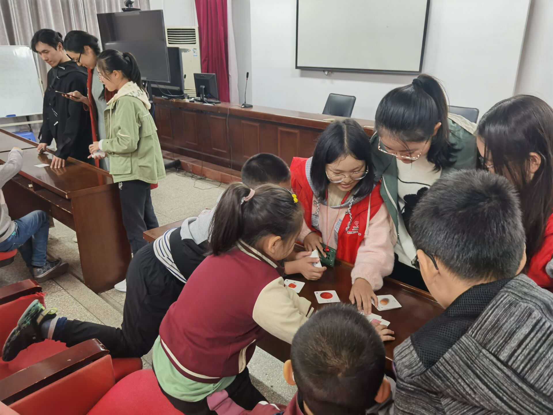 随后志愿者们与小朋友们一同度过了愉快的游戏时光。志愿者们使用垃圾分类卡片先后采用教学、问答、抢答等多种形式帮助小朋友们巩固所学知识,也提高了他们的环保意识。