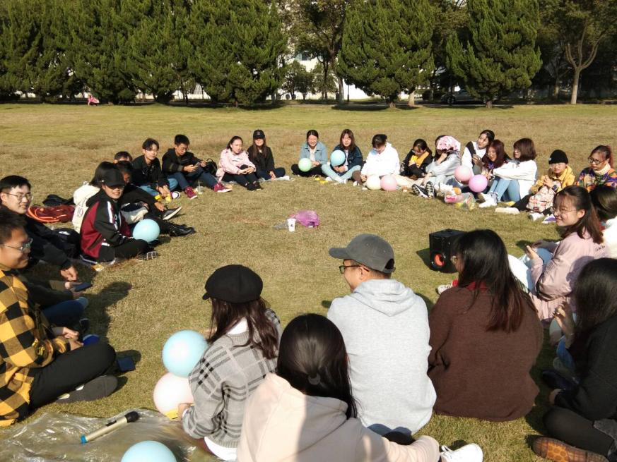 学生会在仙林校区月亮湾草坪举行了大团建,学生会五个部门成员聚集到一起,参加活动。