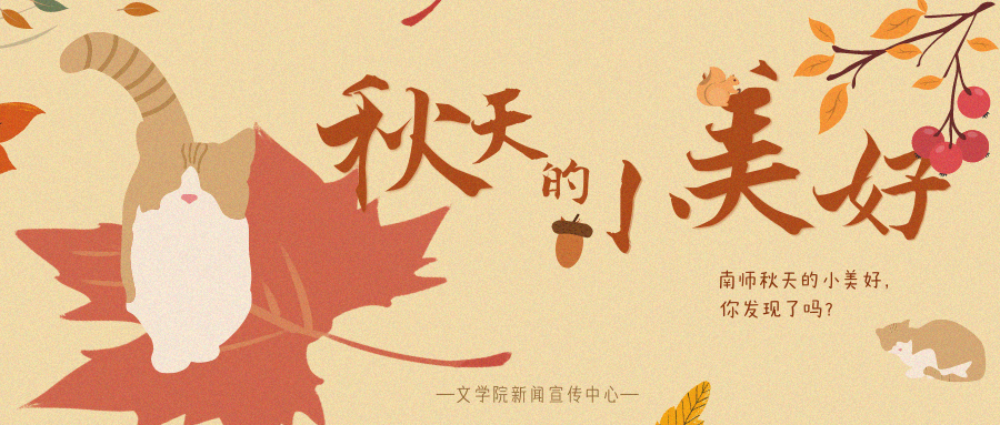 随后,参与到该选题的成员们细心留意身边的秋意。从西区咖啡店的暖意,到厚生路落叶的唯美,再到起霞坡落日的绚丽,那些隐藏在校园里的小确幸最终被一一揭秘。新闻宣传中心的成员们,用文字与照片记录下了南京师范大学的时节更替。校园里并存着的常绿林与落叶林,欢快玩耍的猫咪与小姐姐,斑驳的树影与夕阳相见,一幅幅校园秋景的背后,是我校学生自由而浪漫的性灵在青春的赛道上恣意起舞。
