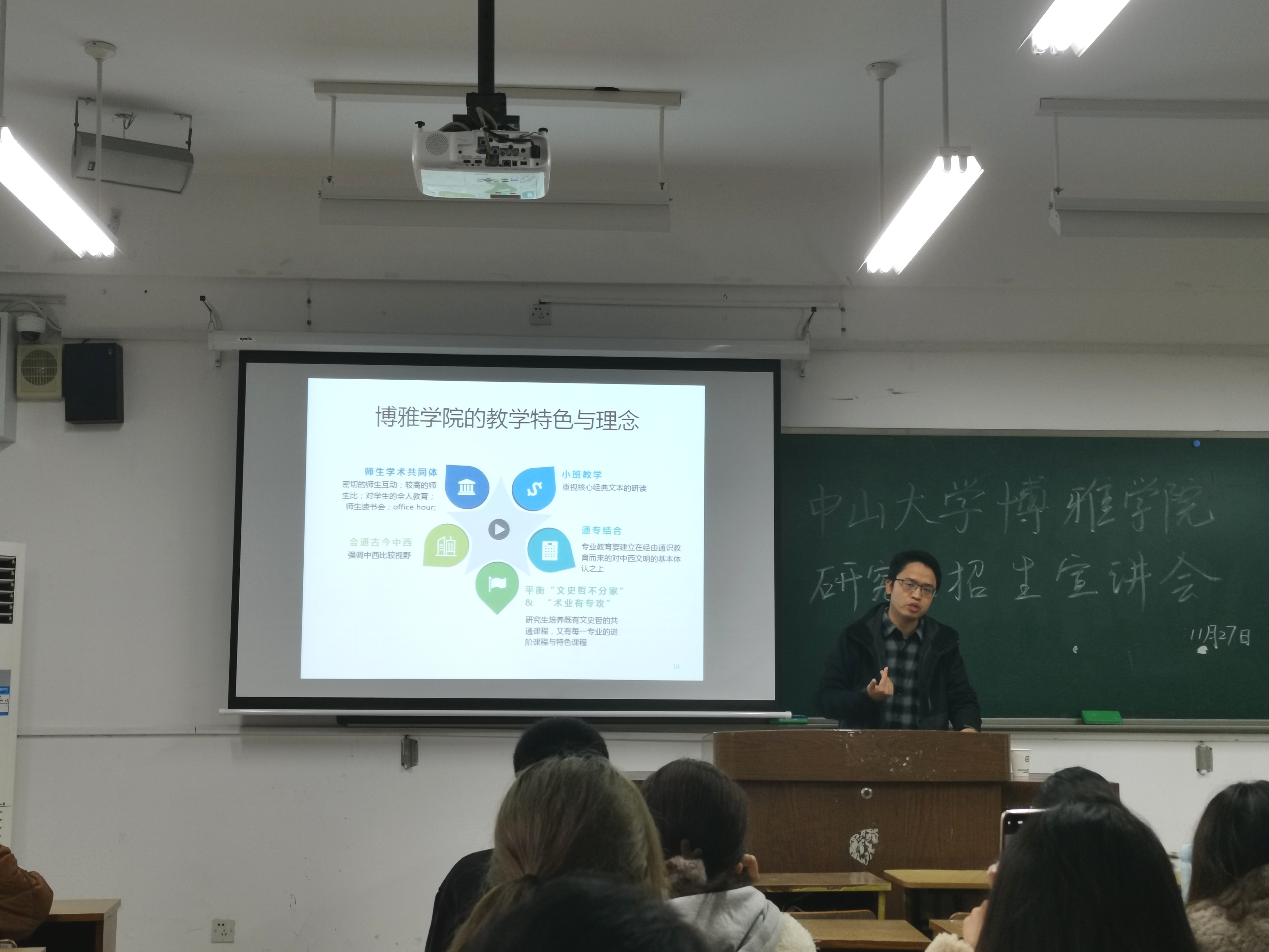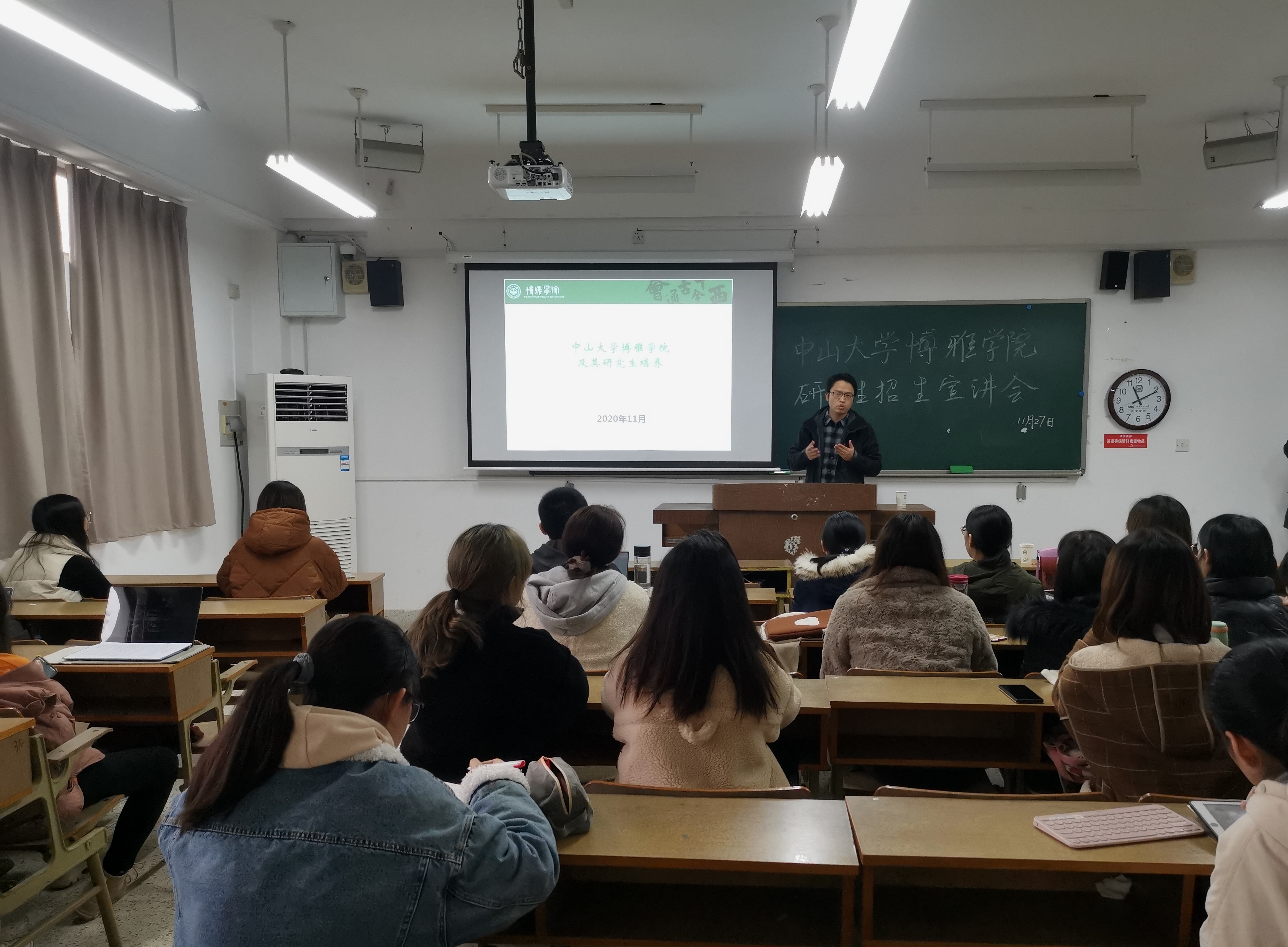 11月27日上午,中山大学博雅学院肖文明老师、陈慧老师、吴海老师在学正楼304进行研究生招生宣讲。本次宣讲会由肖文明老师主讲,主要面向网赌