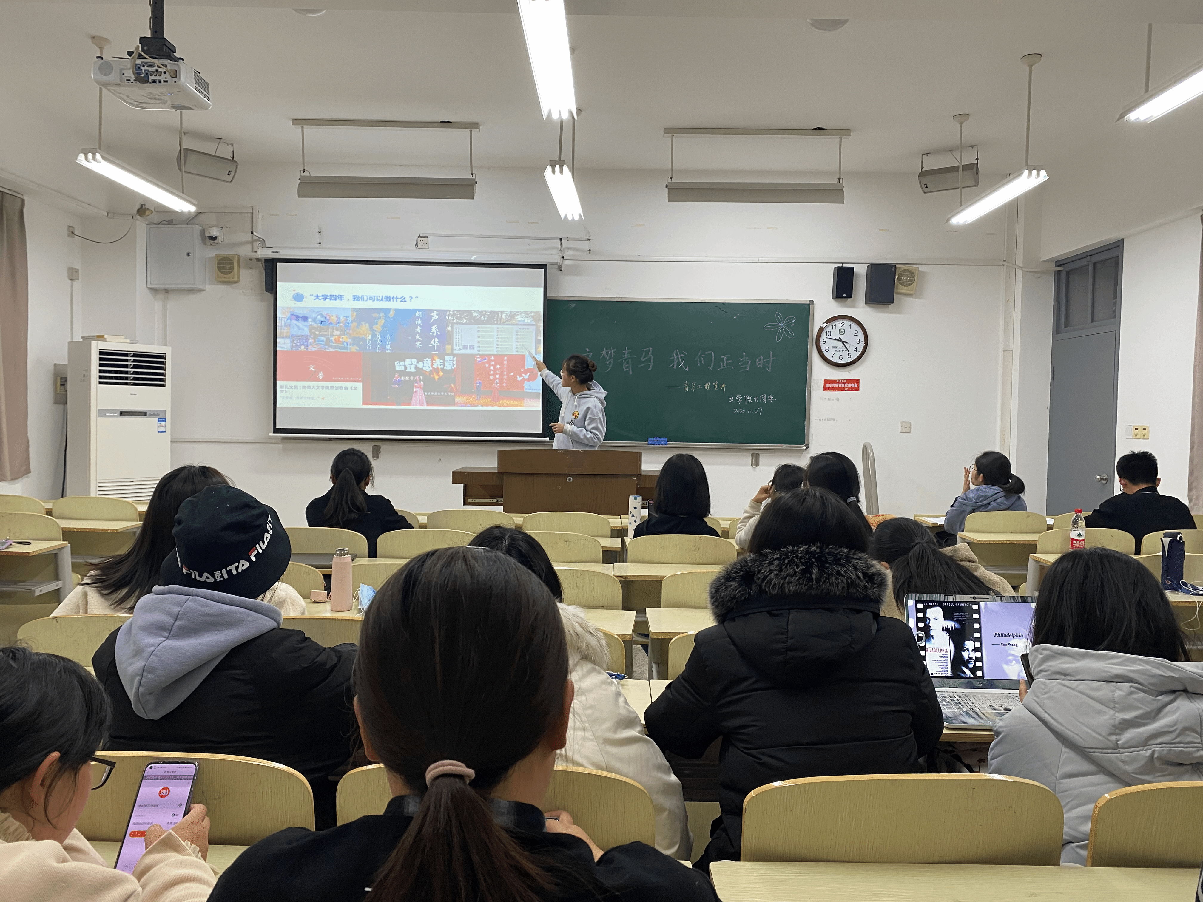 此次活动由18级朱袁欣同学担任主讲人,以“启梦青马,我们正当时”为主题,从“大学四年,我们可以做什么”、“大学四年,我们可以学什么”两方面展开。她鼓励同学们大胆尝试、认真感受、尽快行动,表达了对学弟学妹们的殷切期望与美好祝福。