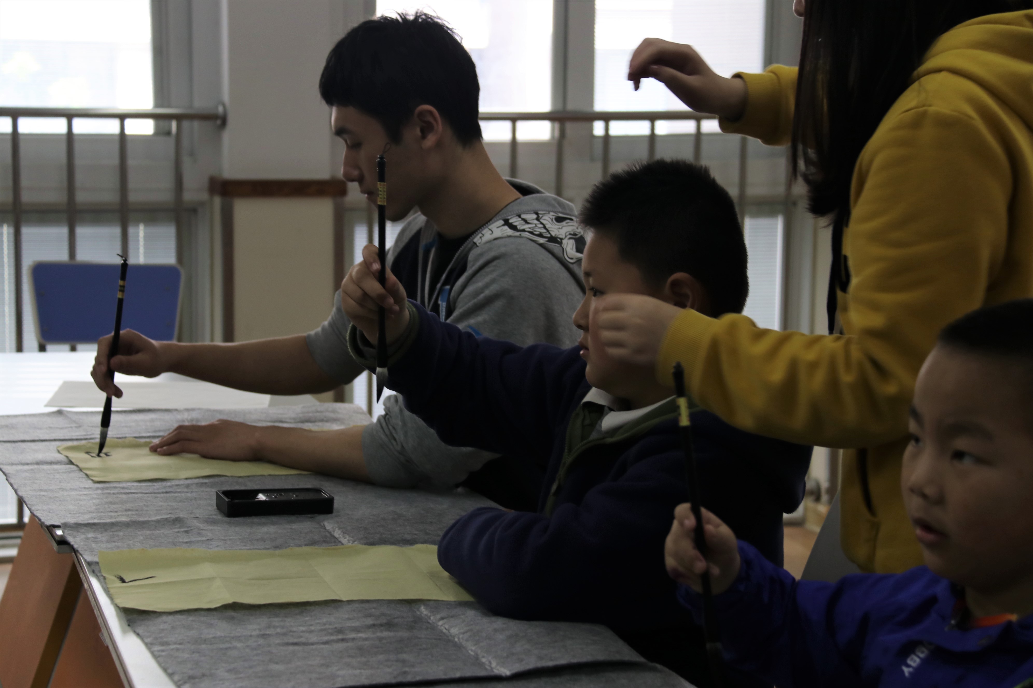 两个小时的欢乐时光很快过去,活动就要结束了。小朋友们依依不舍,拿着自己的书法作品与志愿者合影留念。志愿者们对教室进行打扫,进行扫尾工作,待小朋友们都安全离开后,志愿者们也离开教室。本次特色活动取得圆满成功。
