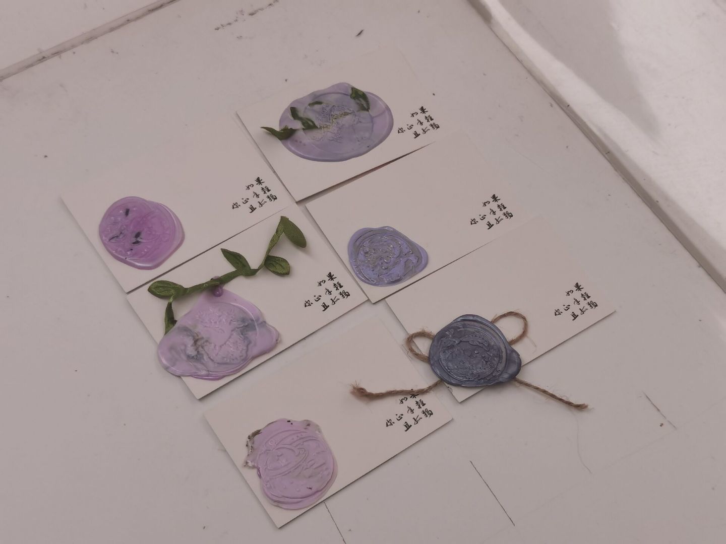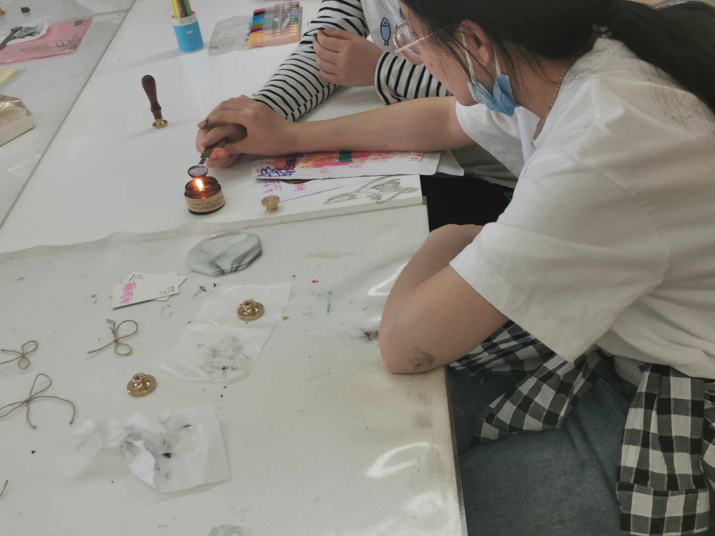 当天下午,活策部的干事徐一卉简要地介绍了印章制作的方法和意义,学员们反应积极,主动参与到活动中来。八名志愿者每两人和一位学员组成一小组,进行分工合作合作,制作各具特色的火漆印章。火漆印章的制作过程充满了乐趣,且成品极富观赏性,不同颜色的蜡粒在志愿者和学员们的手中焕发出新的光彩。虽然只有两支蜡烛,但是在学员们的互相谦让和帮助之下,很快每一位学员就完成了第一枚专属印章的制作。其中有一位学员发挥奇思妙想,将两枚大小不同的印章,通过余蜡粘合到一起,制作出极具美感的双层印章还有一位学员将不同颜色的蜡粒融化后制作出颜色最为特别的印章,获得了一致好评。在制作过程中,每一位学员都与志愿者进行了友好和谐的沟通,共同完成了作品。