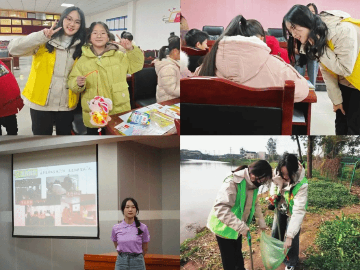 我始终牢记研支团成员作为教师和志愿者的双重身份,正像这朵梦的花还关于广阔天地和灿烂远方。为此,我积极参加各类社会服务工作,先后参与大足区团代会和区旅游文化节志愿服务宣传活动,被“大足青年”视频号收录;前往重庆市大足区金星社区,与大足团区委共同开展“金龙迎春闹元宵”主题活动,与社区近50名青少年儿童共同猜灯谜、做灯笼,欢庆元宵佳节;我前往濑溪河巡河,还青山绿水一片干净……在此过程中,我获得了重庆市青少年模拟政协提案和第四届重庆市助残志愿服务项目大赛的两项市级优秀奖,帮助广阔天地的人们勇敢地坚定地拥抱世界的晴朗。