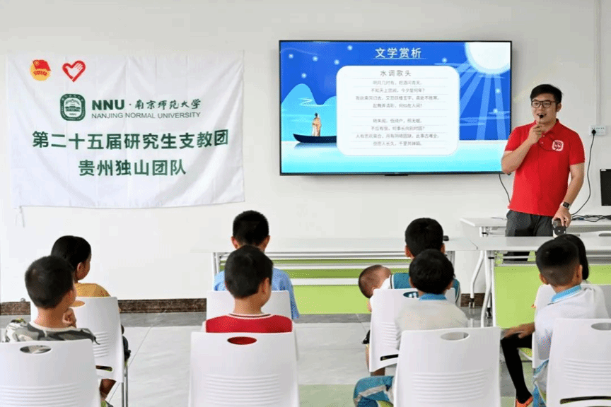 在本科四年的学习生活中,吴辰看到许多网赌 的学长学姐奔赴西部,他心中那颗“到西部去,到基层去,到祖国最需要的地方去!”的种子逐渐生根发芽,并最终化为了实际行动。2023年7月,吴辰与伙伴们奔赴距离南京1500多公里的贵州省黔南布依族苗族自治州独山县,在独山县第三小学开启了他为期一年的支教生活。