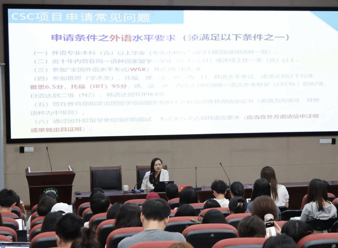 最后,在研究生国际学术交流方面,朱怡淼老师向大家展示了研究生多种参与国际学术交流的形式,包括国家公派出国留学(CSC)、江苏省公派出国留学、学校资助出国留学和自筹经费出国留学等途径。其中,国家公派出国留学(CSC)是朱怡淼老师介绍的较为详细的一种方式,从概况、申请的常见问题等方面都给予了细致的讲解。此外,朱怡淼老师还向新生同学们展示了许多珍贵的海外学习瞬间剪影,让新生们对此有了更加直观的认识。
