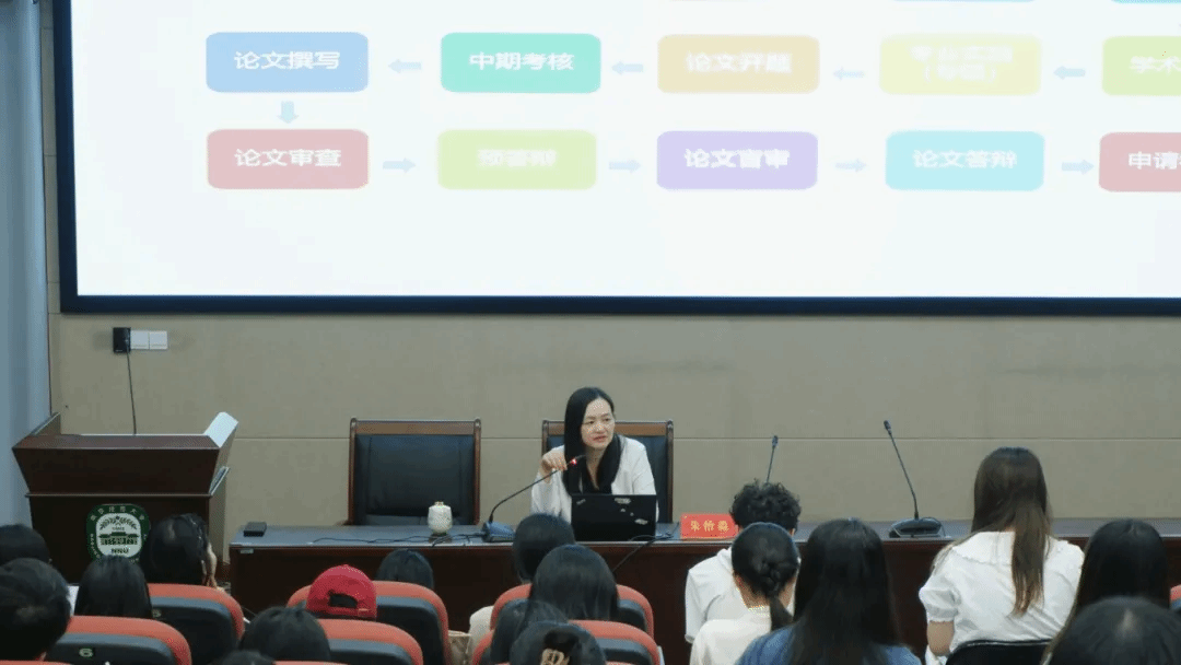 朱怡淼老师首先对2024级研究生新生的到来给予了热烈的欢迎,预祝大家在新阶段能够取得丰硕的成果,并珍惜人之人之间的相遇之缘。其讲座主要从研究生培养过程与要求、创新能力提升和国际学术交流三大方面进行了深入的讲解。