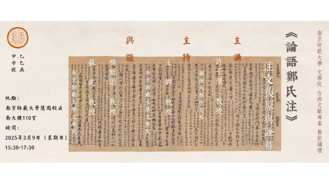 古典文献学专业“养新”讲坛之乙巳岁甲字号讲座,在南京师范大学随园校区南大楼110室顺利举办,香港岭南大学中文系许子滨教授以“《论语郑氏注》注文复原与诠释”为题进行精彩演讲。本次讲座由南京师范大学古典文献学专业王锷教授主持,古典文献学专业师生与校内外
