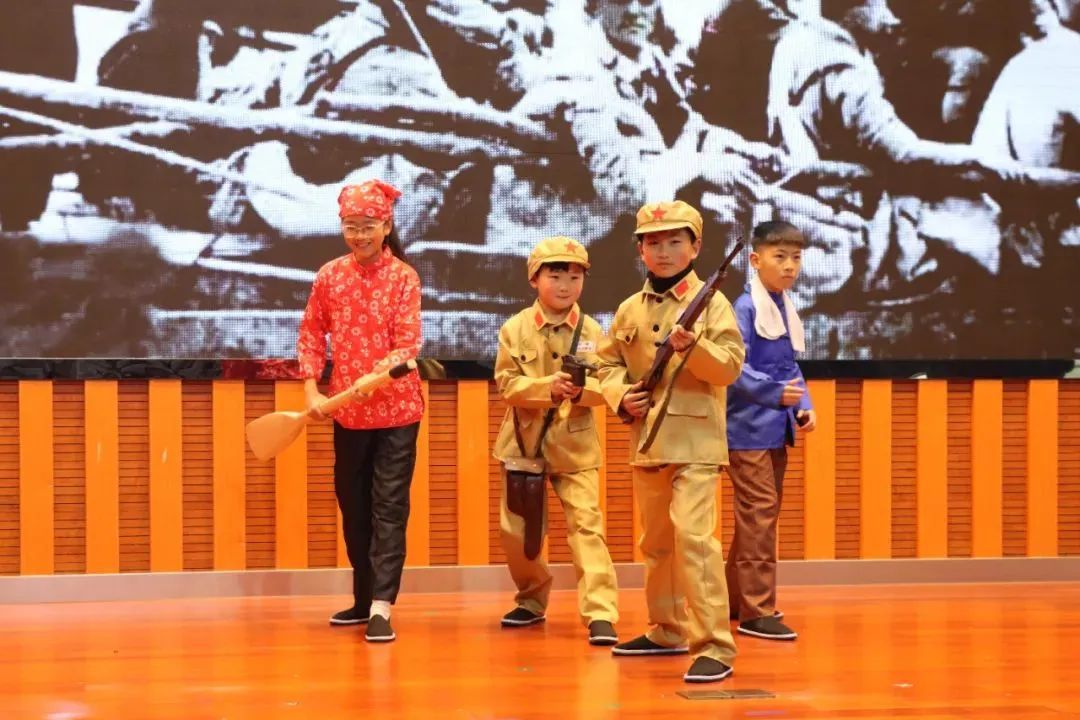 的师生团队依托桃源镇丰富的红色资源,深入挖掘当地的革命故事和英雄事迹,并将其转化为生动的艺术作品。目前,“行走的红色思政课”已成功改编排演了《秘密联络站》《我送亲人过大江》《红色阳和桥》等情景剧目,并在百姓舞台、乡风文明会客厅等平台完成展演。结合“强国复兴有我”群众性主题宣传教育活动,《秘密联络站》及《我送亲人过大江》还登上桃源镇各小学“开学第一课”,惠及学生2800余人,打造了乡镇学校爱国主义教育的新范式。