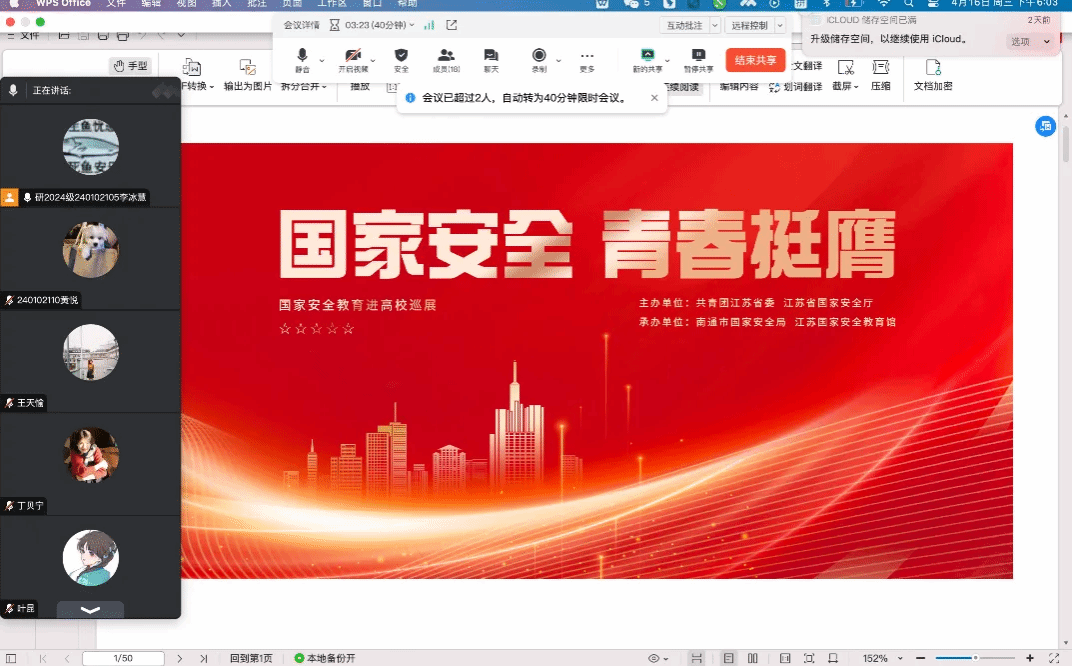 本研学生以团支部为单位,通过线上线下结合形式开展主题团日活动,学习国家安全教育知识。文院团员青年通过学习、讨论等环节,聚焦“国家安全与个人的关系”等议题展开思辨,不断提升理论素养,加强国家安全意识。