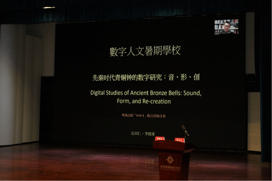 启动仪式后,进入前沿学术成果发布环节。北师香港浸会大学庄以仁院长和北师香港浸会大学李建深教授,介绍了“先秦时代青铜钟的数字研究:音、形、创”。该研究运用数字技术深度探索青铜钟这一先秦重要文化载体的历史与艺术价值,生动展示了数字技术在考古与艺术研究中的创新融合与应用潜力。