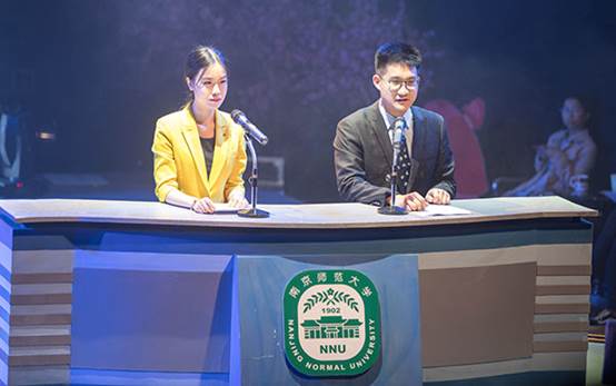 毕业演出在青春洋溢的舞蹈《中国话》(2014级辅子瑄等)和《易燃易爆炸》(2014级范茹等)中拉开了序幕,一场劲歌热舞点燃了同学们的热情。主持人由14级播音与主持艺术专业的孙熹之和江苏文艺台主持人、全国十大DJ徐巍(07级播音与主持艺术专业毕业生)担任。同学们充分展示自己的专业才能,聚焦时事热点及南师风采,为观众们带来了“新闻三十分”(2014级程诗涵、穆梓健)、“今日关注”(2014级任丽颖、金杉杉)、“天气预报”等精彩节目。“致敬40 音乐变迁40年”(2014级乔松、徐祯鸣等)的广播电台节目则为观众带来了一场听觉盛宴,一曲慷慨激昂的《红日》(2014级张端)更是引发了全场大合唱,现场气氛热烈。江苏文艺广播《文艺新天地》主持人文菲(02级播音与主持艺术专业毕业生)也作为特邀嘉宾惊喜亮相“南师会客厅”节目,她与主持人的可爱互动以及她风趣幽默的性格吸引了全场观众的眼球。“动画总动员 卡通人物齐欢唱”节目(2014级任俪濒、王建军、李鑫等)将观众们拉回到美好的童年时光,蓝精灵、喜羊羊、光头强等卡通人物还和观众们进行亲切的互动。播音与主持艺术专业的毕业生们还为观众们带来了有趣的“声临其境”节目,两段配音“疯狂动物城”(2014级成川等)和自主改编的“喜欢你”(2014级刘洛奇、王子玥)不仅给现场带来笑声,观众也深受感动。最后,伴随着毕业生们诵读《大学·礼记》片段(2014级董毅君、房鑫、陈丹怡、费青云、徐银婧等),本次毕业演出圆满结束。