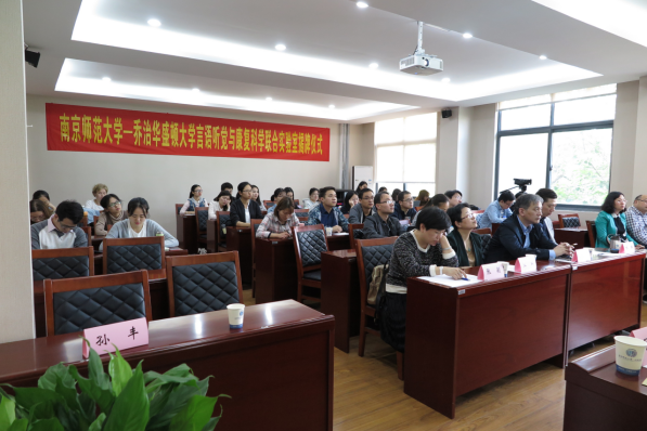 在到会的校外专家中,南京医科大学康复医学院言语治疗系主任林枫副教授作为代表发言。他介绍说,康复医学共涉及三方面治疗,即物理治疗、作业治疗和言语治疗,其中言语治疗学科在国内发展虽然是刚刚起步,但是前景非常广阔。作为身兼医生和语言学博士双重身份的他,希望乔治华盛顿大学帮助引进最新课程,希望联合实验室和南京医科大学等单位加强合作、共享资源,在言语听觉与康复科学领域做出更多更好的研究。