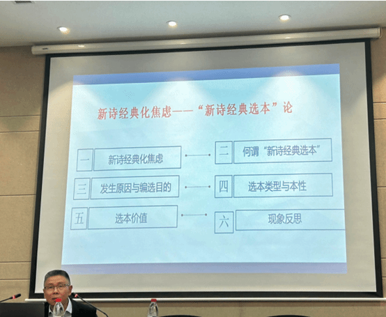 讲座伊始,方教授首先介绍了20世纪末“新诗经典选本”发生的历史背景、原因以及编选目的。他指出,在世纪末和世纪初的十年间,由于世纪情节和世纪意识的驱动,学界、诗歌研究者、诗人、编辑和诗歌爱好者共同参与了对百年新诗历史的盘点和总结,以证明新诗的成就和价值。