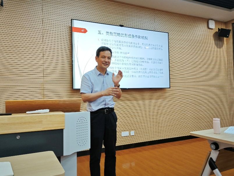 讲座的第二部分,刘老师以浙北吴语的个案为例,介绍了类指准冠词的形成。随后,刘老师重点讲解了类指范畴的形成条件和机制。首先,量词存在于有类指显赫特征的语言中,这也是类指显赫现象的类型学大环境。其次,人类语言存在以个体转喻种类的表达机制,并且多表现为(不)定指冠词转喻类指。最后,在很多方言中都可以找到量词的定语标记功能与次类指向类指扩展的现象。交流讨论环节,多位老师和研究生关于量词问题向刘老师提问请教,刘老师肯定了青年学子的学习热情和钻研精神,对问题进行了详细的回答,大家受益匪浅。