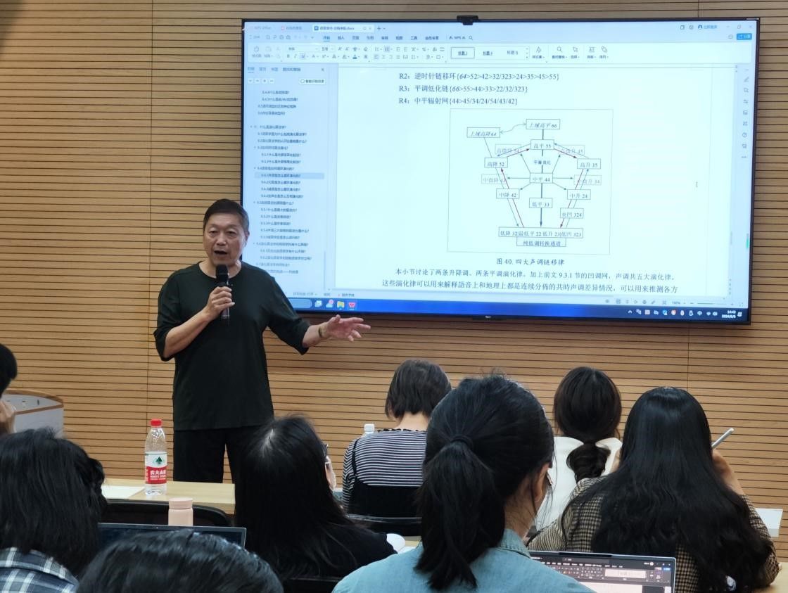 6月6日晚,讲习班还开展了集中答疑课,朱晓农教授针对学生所提的小称、儿化、松紧元音、元音划分等问题进行逐一解答,学生均表示收获颇丰。