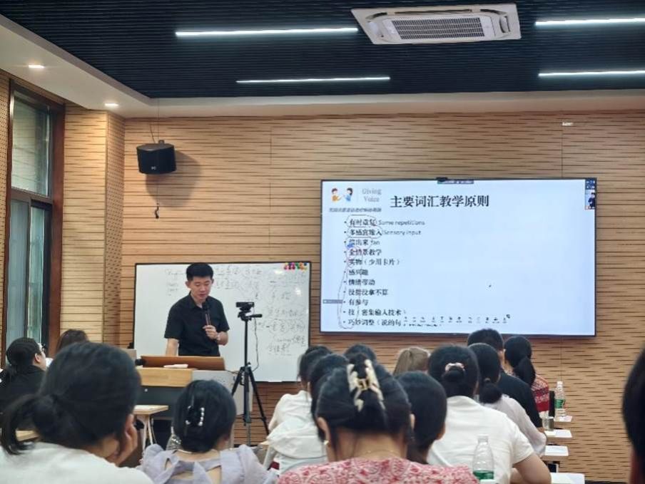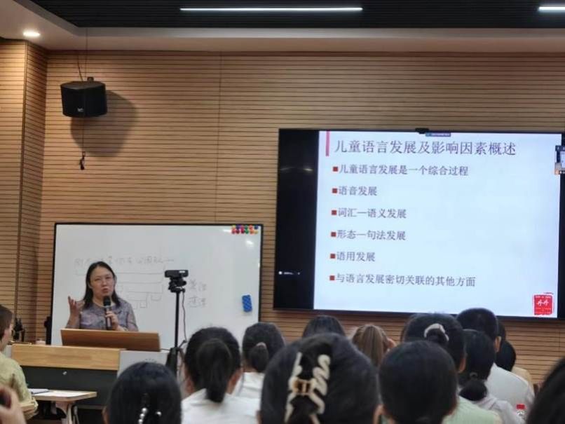 培训首日,梁丹丹教授为学员们带来了多场精彩课程。她详细阐述了汉语的不同词类和语句结构、儿童语言发展的科学规律、存在不同障碍的儿童在语言发展中可能会遇到的困难及相应机制,特别是当孩子从词汇阶段跨入双词组合和句子阶段后的词汇与语法发展特点,并深入分析了词汇与句法交织发展的复杂性。同时,梁教授还强调了言语工作记忆在儿童语言发展中的重要性,并分享了一系列干预策略和实用技巧。授课过程中,学员们聚精会神,积极互动,现场气氛热烈而活跃。
