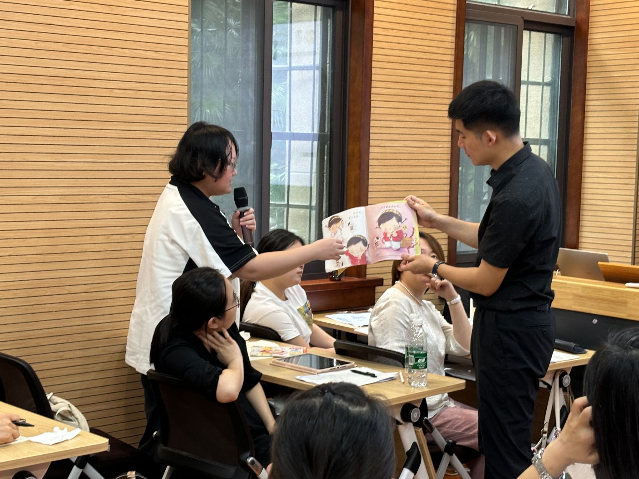 培训第二天,孙斯扬老师为学员们带来了一场生动实用的语言训练实操课程。他通过案例分析、视频演示、角色扮演等方式,详细讲解了词汇和语法的干预原则与方法,介绍了如何运用SSY语言发展模型来对每个孩子的不同情况进行分析和干预,并引导学员们进行分组实训。在实训过程中,学员们不但将所学知识应用于儿童喜爱的游戏活动中,还有机会走出教室,在校园的各个情境中运用各类词汇句法的干预技巧,有效地将理论转化为实践。同时,学员们还积极分享自己的心得与经验,相互学习、共同进步。