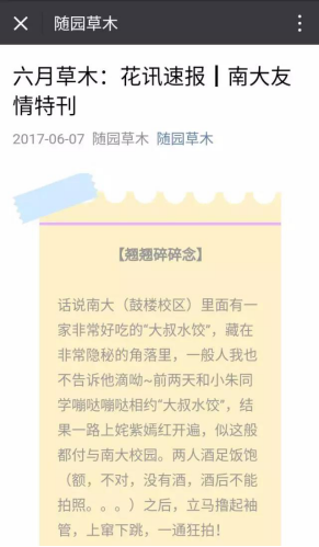 2017年5月20日,《随园草木》推出第一期。公众号的创办者是南师大网赌