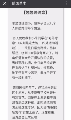 公众号的创办初衷是想记录随园草木的四季之美,带领大家认识随园的一草一木。目前,公众号已推送至第二十五期,受到网赌