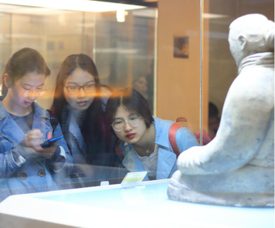 9日,我们参观了西安碑林博物馆及半坡遗址。西安碑林博物馆是我国收藏碑石时间最早、数量最大的一座艺术宝库。作为古文献学子,碑林是我们心中的圣地,当然也是我们重点考察的对象。我们在碑林讲解员的带领下,主要参观了第一至四展室及石刻艺术馆。第一展室陈列唐《开成石经》,包括《周易》《尚书》《诗经》《周礼》《仪礼》《礼记》《春秋左氏传》《春秋公羊传》《春秋穀梁传》《论语》《孝经》《尔雅》以及《五经文字》《九经字样》,另有清代补刻的《孟子》。同学们对着石碑品读经典,仿佛看到了千年前孜孜求学的文人学士们的身影。第二至四展室主要是书法名碑,荟聚了虞世南、褚遂良、张旭、颜真卿、柳公权等书法圣手的墨迹。比如二展室的《多宝塔碑》《颜氏家庙碑》及三展室的《颜勤礼碑》这三个驰名中外的书法瑰宝,使我们窥见了颜真卿的书学境界。石刻艺术馆里的东汉双兽、汉画像石砖、唐李寿石椁及墓志、昭陵六骏等,雕刻手法多样、风格各异,是不同历史时期石刻艺术中的精品。半坡博物馆主要展示了距今五六千年的古人遗迹。从房屋遗址、圈栏、洞穴、陶窑、墓葬及生产生活工具中,我们了解了半坡人的衣、食、住、行。从利用重力汲水的双耳罐中,我们看到了古人的智慧。从人面鱼纹盆、鹿纹盆、人头壶、人面鸟头纹瓶等彩陶文物中,我们感受到了半坡人的审美旨趣。