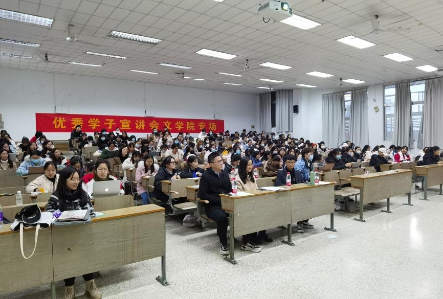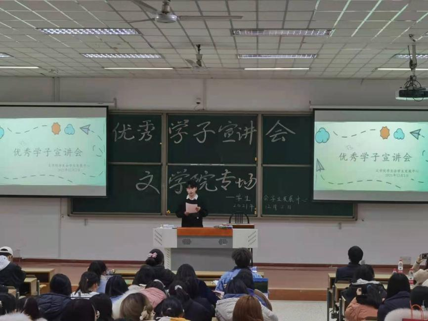 优秀学子宣讲会于学正楼402教室举办。本次宣讲会由陈明欢同学主持。活动有幸邀请到了尹谭皓、曹李馨、余航、沈慧、曹欣颖五位优秀学子进行经验分享。