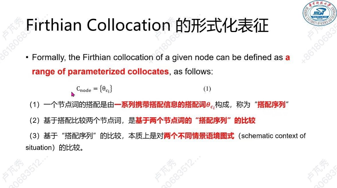 什么是搭配序列?唐教授指出一个节点词的搭配是由一系列携带搭配信息的搭配词构成,称为搭配序列。随后提出搭配词所携带的信息包含词形、相对于节点词的位置、相对于节点词的距离、与节点词的关联强度四个方面的信息,并通过一些实例论证了为何是这四个方面的信息,以及怎么去计算这些信息。并指出在该基础上还可以进行进一步的研究,如借助词语知识图谱对搭配序列进行语义抽象,观测节点词的语义分布;以及不同词间语义相似度的计算。唐教授通过区分英语中的副词和对二语习得词汇能力的分析两个实例,充分证明了这种基于Firthian Collocation的新的形式化表征所具备的实际意义。