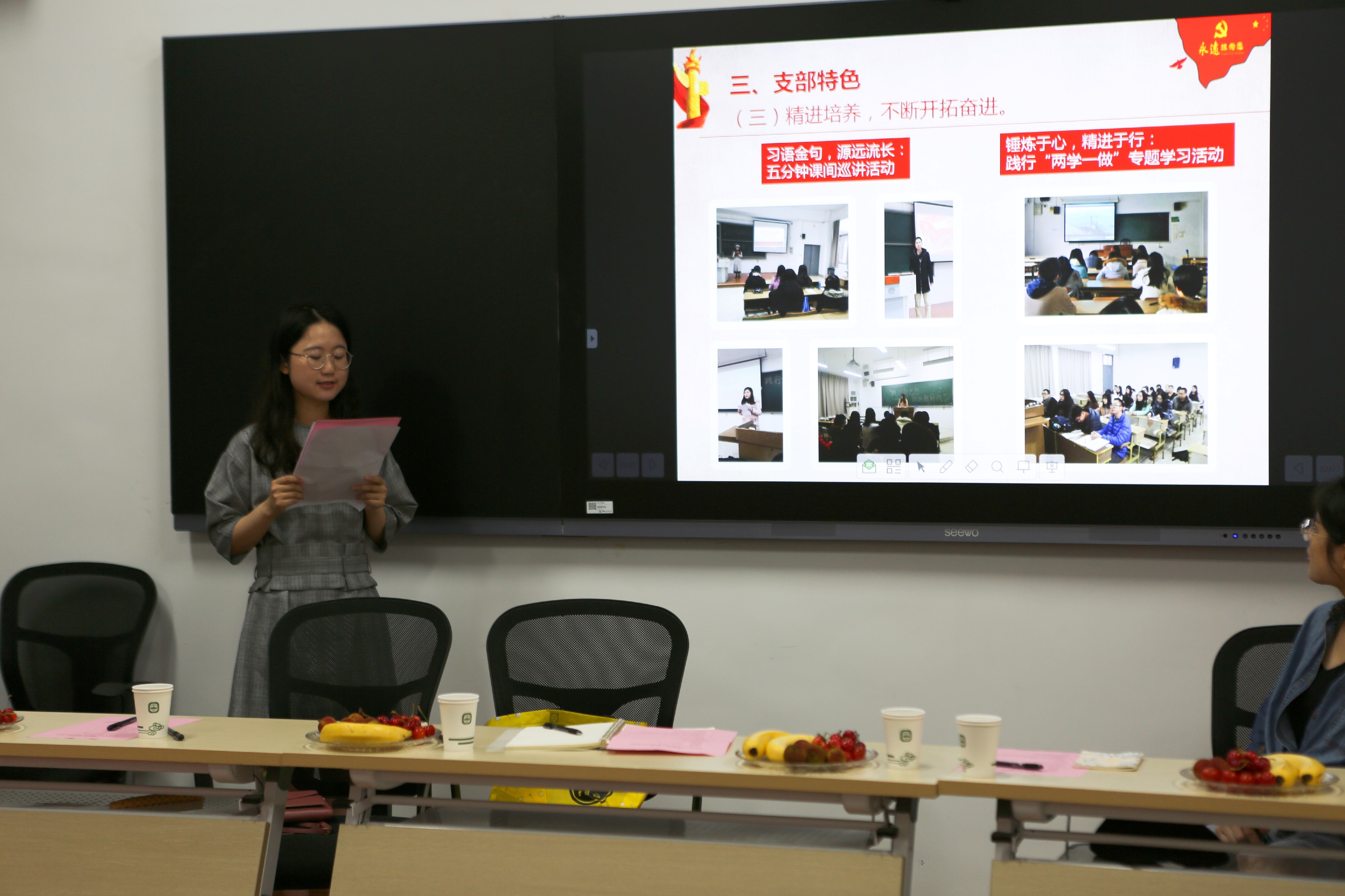 2017级研究生党支部书记王琛琛从支部概况、支部建设、支部特色三个方面向与会人员展示了2017级研究生第二党支部的风采。2017级研究生第二党支部凭借精准定位、精进培养的工作思路和精益求精、精诚所至的工作态度于2018年荣获校“先进党支部”称号,是网赌