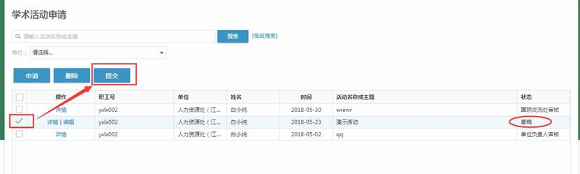 个人申请提交规则说明:活动申请人在线填写申请信息提交后,若所在单位负责人还未进行审批,则可撤回修改,若所在单位负责人已进行审批,则无法撤回修改。
