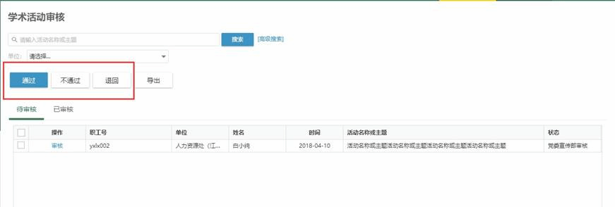 1.当选择“通过”即表示该学术活动申请流程通过结束;