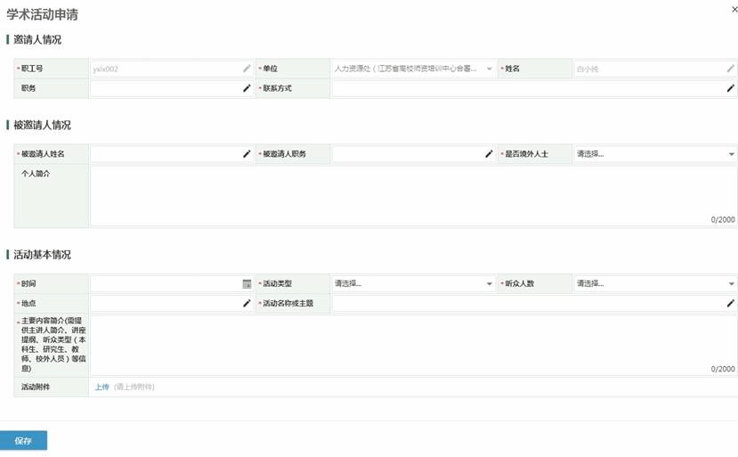 主办单位申请:活动申请人在线填写申请信息提交后,由所在单位负责人进行在线审批;