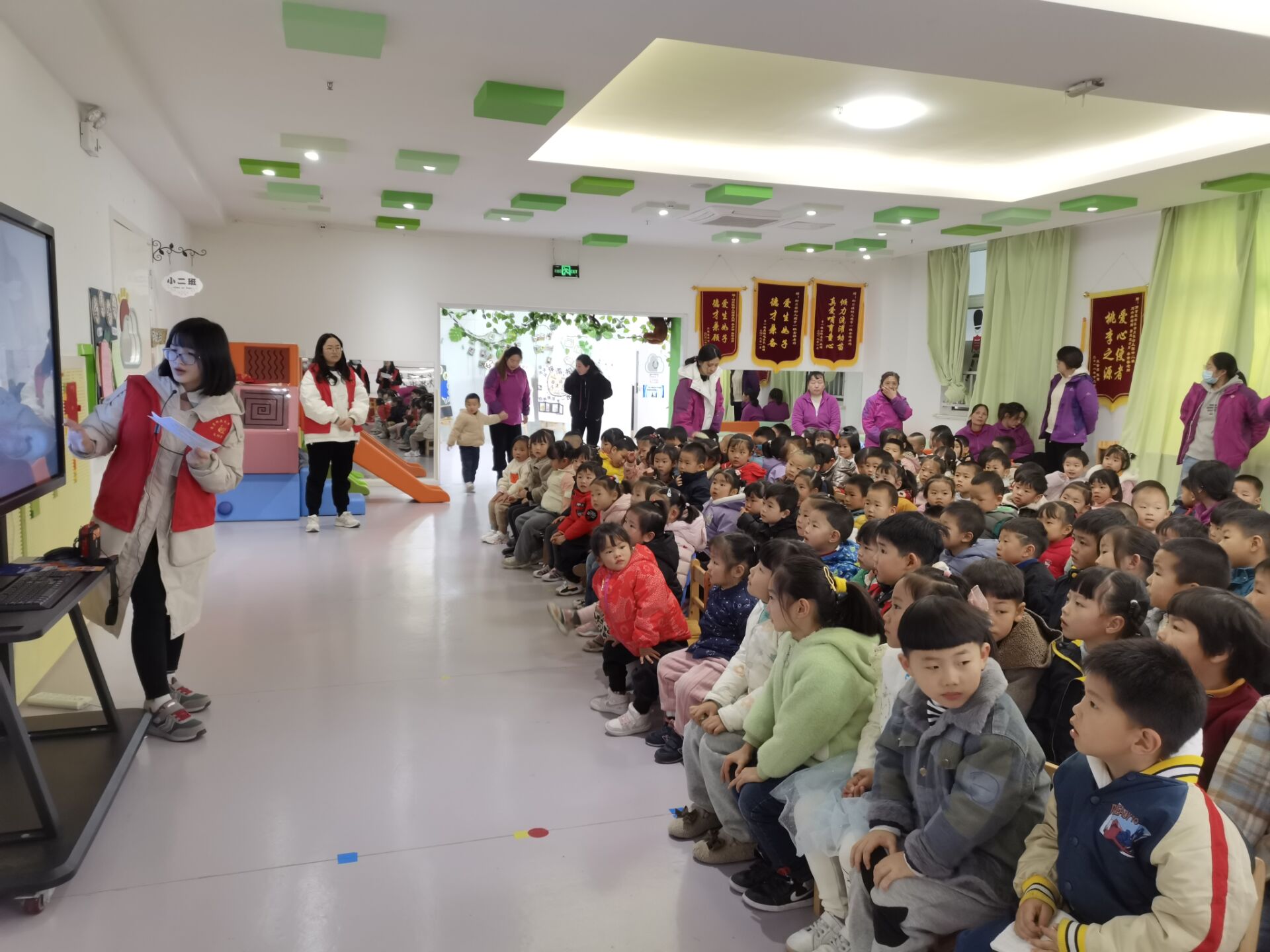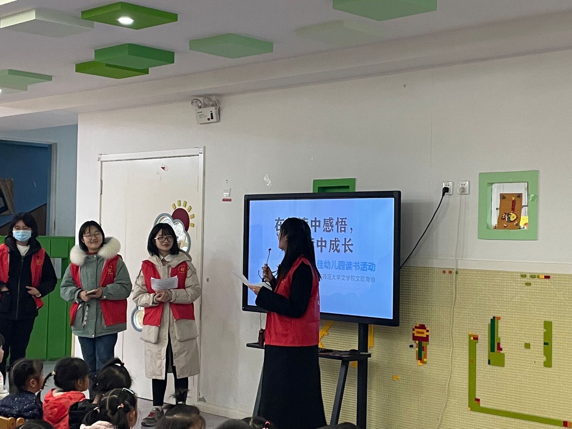 文欣青协盛世花园基地的志愿者们来到幼贝佳幼儿园,开展以“在阅读中感悟,在阅读中成长”为主题的特色活动。志愿者们走进幼儿园,以绘本故事分享的方式,激发小朋友们的阅读兴趣,引导他们走进书籍的世界。