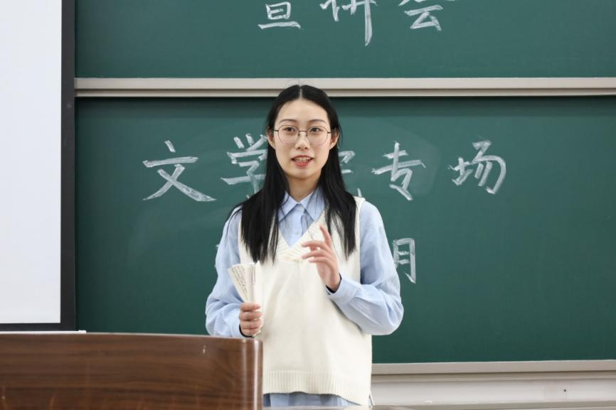 宣讲会的第三个板块是由研究生分享自己的支教经历。张帆同学从出行、住宿、环境、饮食、出行、工作、活动七个方面向大家详细讲述了她在泗洪研究生支教团长达一年的支教历程。她表示这就是她所向往的奉献自己、收获的方式。到此宣讲会圆满结束。
