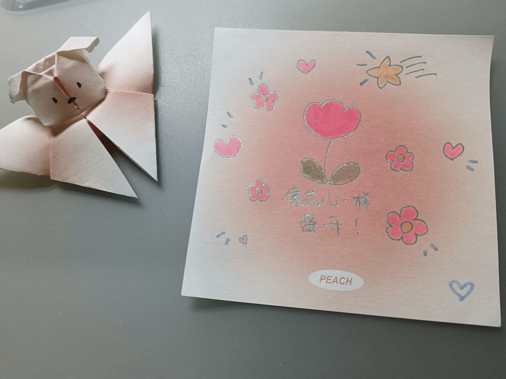 志愿者和干事准时到达基地后,与基地人员一起向孩子们播放了精心剪辑制作的视频,视频内容展示了每位文欣青协干事和志愿者们亲手折纸的过程。孩子们面带期待,认真安静地观看完了全部内容。播放结束后,志愿者们将各自制作的折纸作品与写有寄语的便利贴分发给孩子们,便签上志愿者们绘制的可爱动画形象激发了孩子们的好奇心与兴趣。接下来,志愿者与基地工作人员一同陪伴孩子们做健身操、算数,并进行了户外活动。活动结束后,志愿者与干事们收集整理现场的照片视频资料,与基地人员沟通交流,收获了不少认可和支持。