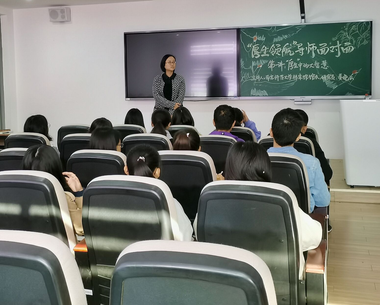 其次,在工作方面,她建议同学们在大一上学期就踊跃报名参加一些学生组织,在深入了解后再进行筛选确定,重要的是要先确定自己感兴趣的版块和方向,再有针对性地提升自己的技能。而在生活方面,她提出要学会与身边的人相处,与舍友建立和谐关系,与家长保持良好关系,保持身心健康。最后在休闲方面,支景老师建议同学们要做到知行合一,鼓励同学们多出去走走看看,多了解本地的历史文化,风土人情,采取的方式也可以多样,比如可以走出校园去开班会等。