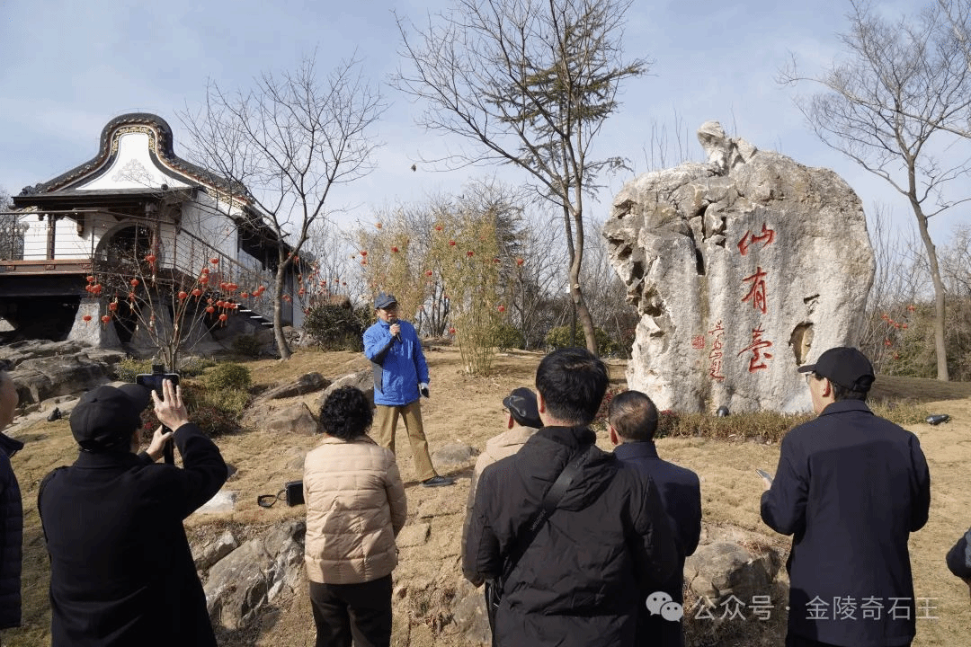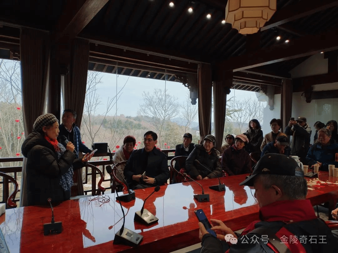捐赠者王增陵简述了这块巨型红太湖景观石的故事,校友张道康介绍了“随遇亭”和“仙有台”的筹建始末。