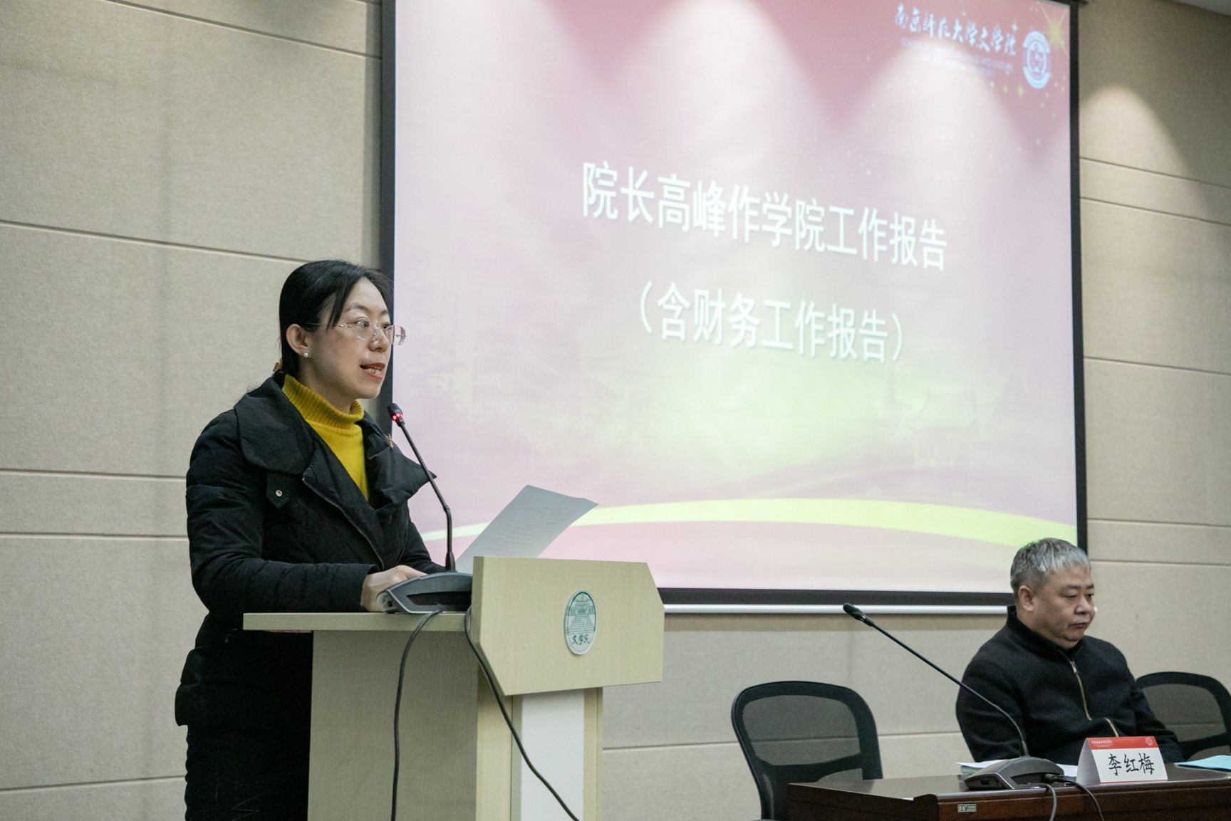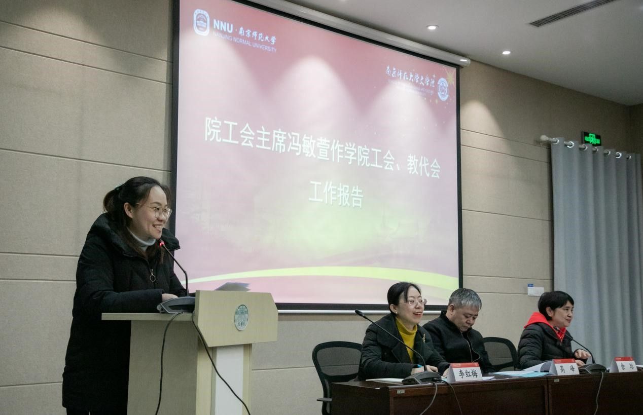 工会情况进行汇报:第一,加强组织建设,推进学院民主,细化工作规范;第二,注重专项学习,加强校内外交流,提升工会工作效能;第三,广泛开展文体活动,引领职工提升身心健康;第四,切实维护权益,营造“爱院如家”文化,打造温馨氛围;最后,冯主席就工会的财务情况做了汇报。